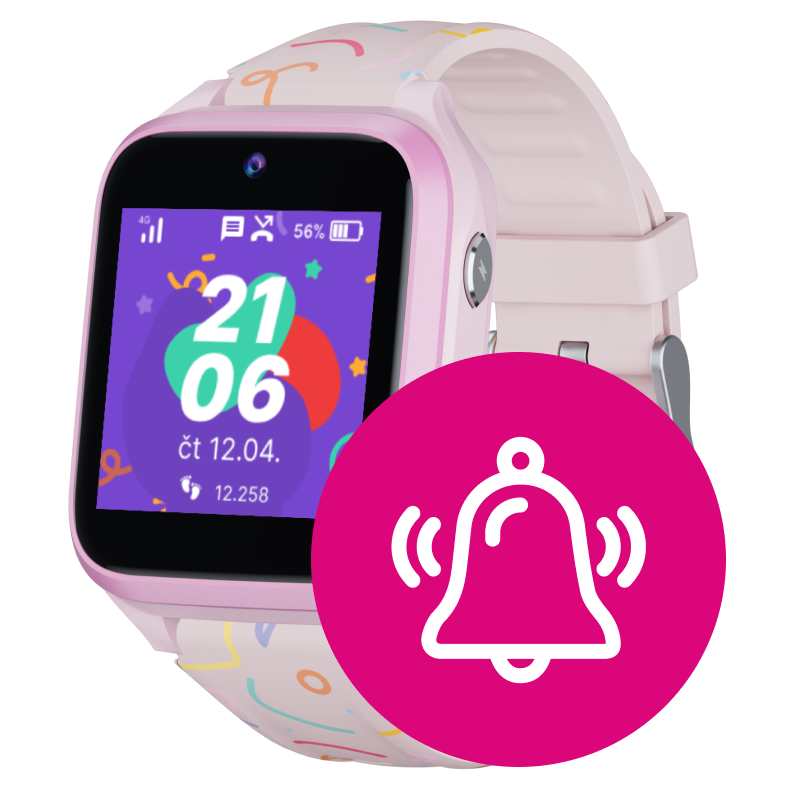• Foťák 2 Mpx, měření tepu, krokoměr, budík, školní režim a SOS tlačítko.